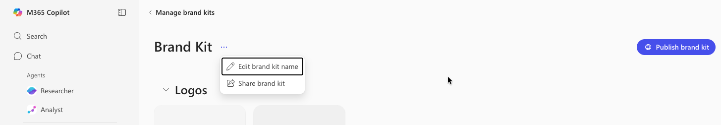 Enterprise brand manager policy setup for official brand kits : https://learn.microsoft.com/en-us/copilot/microsoft-365/enterprise-brand-manager