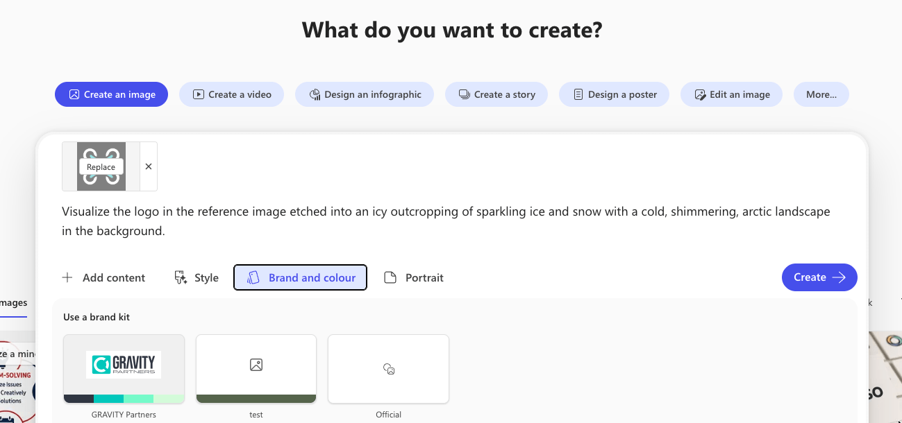 Avec l’arrivée de Microsoft 365 Copilot et particulièrement du menu Create, vos équipes peuvent utiliser automatiquement cette identité visuelle dans leurs documents, présentations, visuels et contenus générés. À condition, bien sûr, que votre organisation dispose d’un Brand Kit officiel… et que certains utilisateurs aient le rôle de Brand Manager.